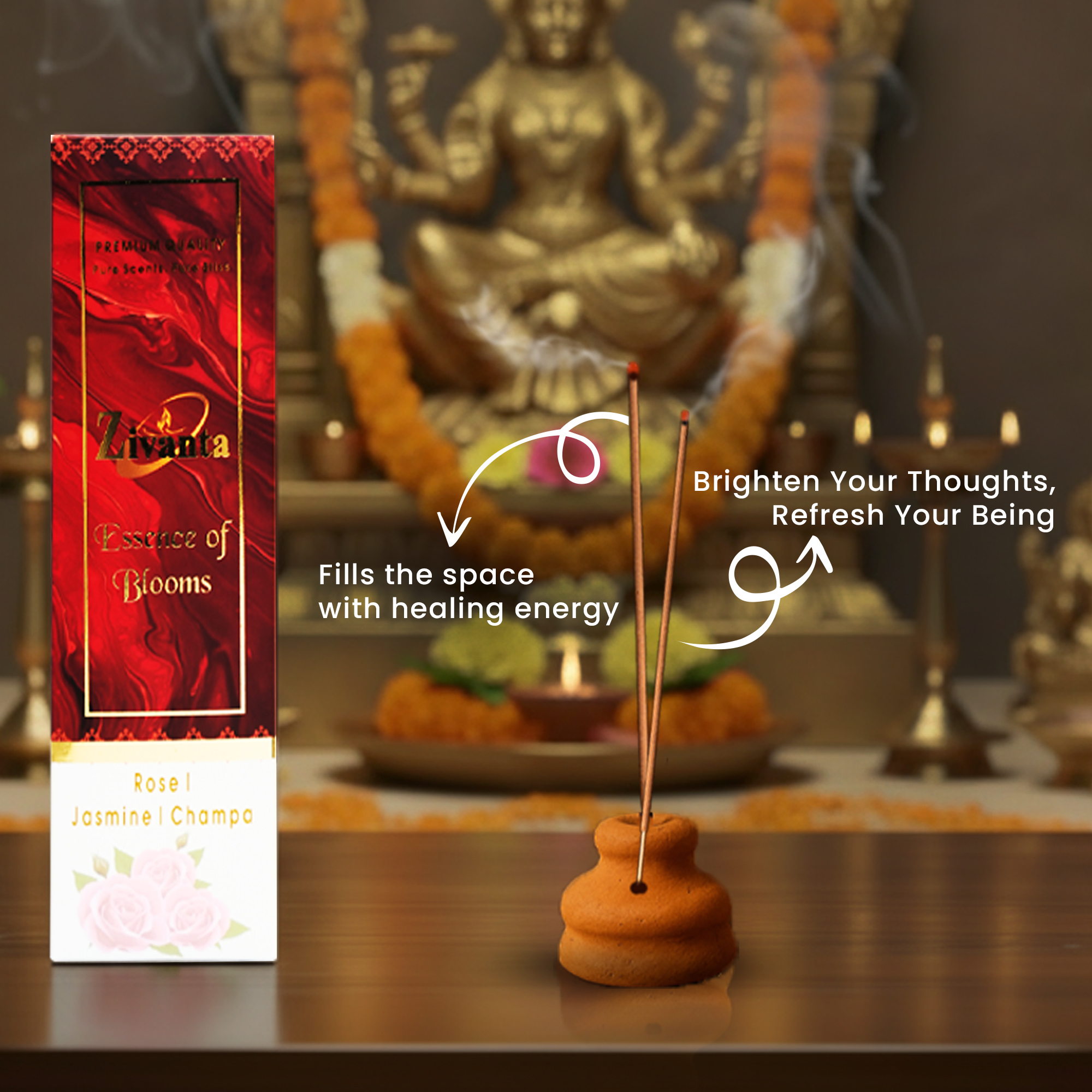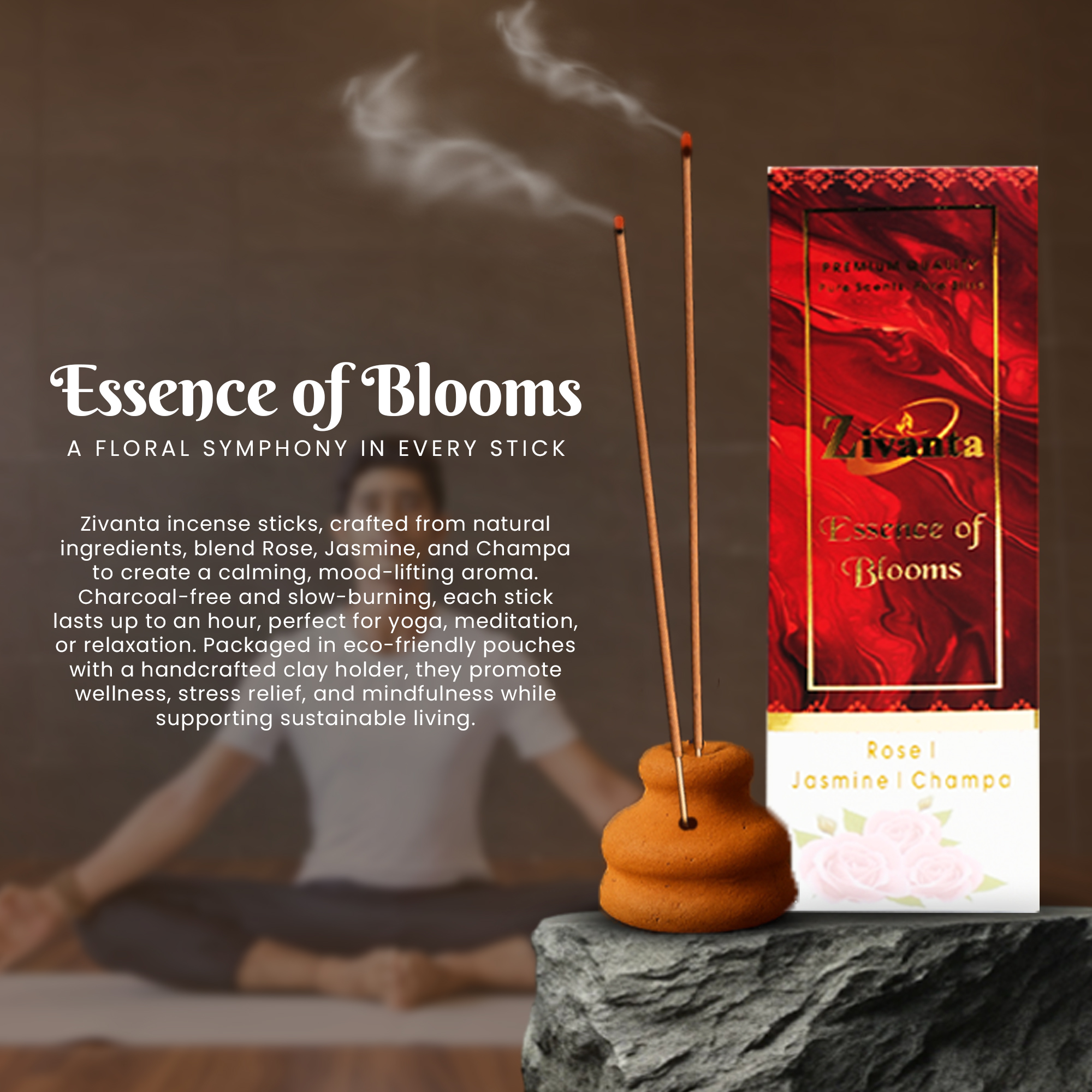 The Zivanta Essence of Blooms Incense Set brings together India’s most beloved floral fragrances in one elegant collection. This trio is crafted to gently uplift the atmosphere with soft, pleasant aromas suitable for everyday use — from a fresh morning start to a soothing evening wind-down.